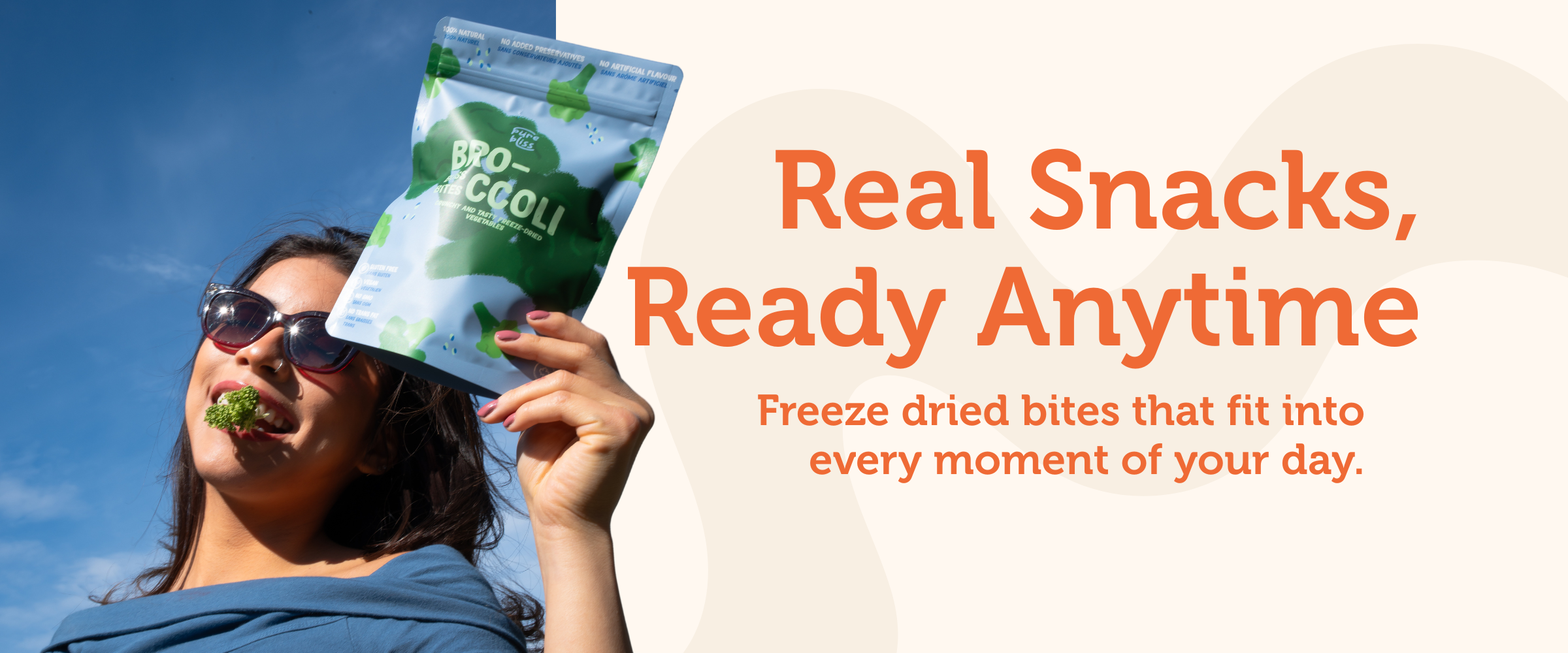 Our mission is to make healthy eating easy, enjoyable, and sustainable. Offering 100% natural, zero-waste freeze-dried snacks made from real fruits, vegetables, and yogurt. Each product is crafted to preserve nutrients, reduce food waste, and bring you closer to nature in every bite.