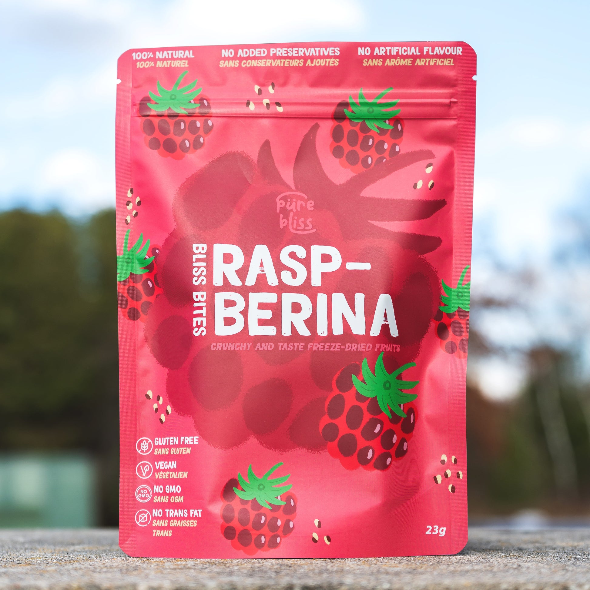 The freeze-drying process preserves about 97% of the nutritional value of fresh fruit, ensuring you get all the benefits while enjoying a longer shelf life compared to other preservation methods like canning or dehydrating. The intense flavour, aroma, colour, shape, and texture of the raspberries remain intact, making them a delightful and nutritious choice!
